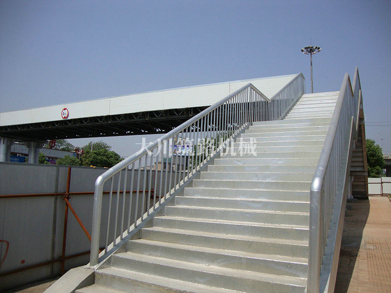 特點:本鋼橋主梁采用標準的“321鋼橋”現(xiàn)場安裝并用朔板包邊,梯道用型鋼、鋼板在廠內(nèi)加工好現(xiàn)場拼裝,達到安裝便捷、美觀、舒適的要求。本鋼橋安裝工期緊,安裝條件有限,大都只能得用晚間在封鎖交通的情況下安裝。